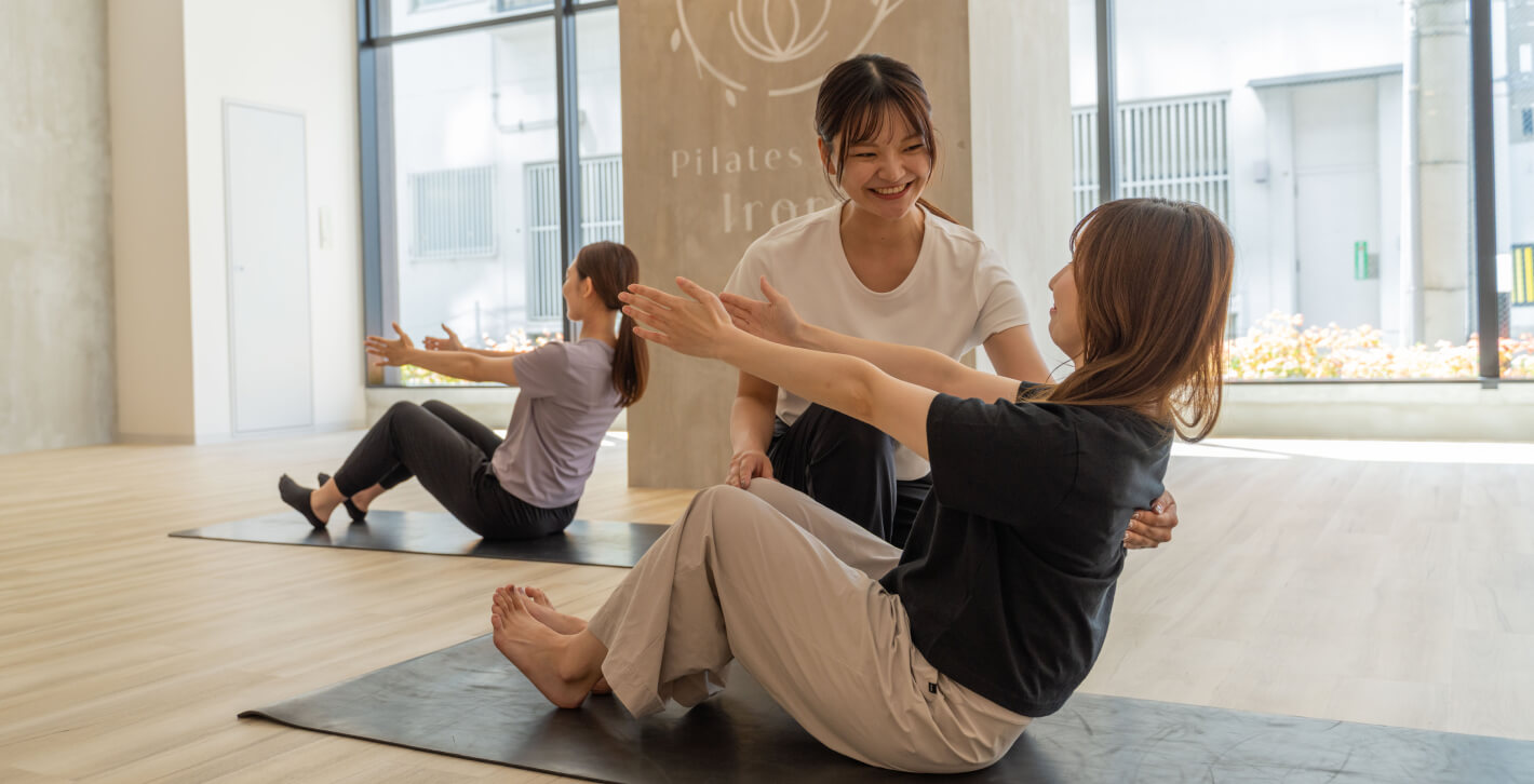 安心のフォロー体制Irori.明石店は、運動初心者の方やピラティスが初めての方にも安心して通っていただける、女性専用ピラティススタジオです。カウンセリングを通して丁寧な説明を心がけており、どのような方でも安心してレッスンを受けていただくことができます。